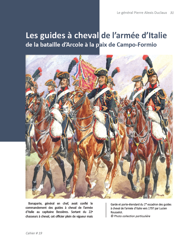 De la plaine du Pô au plateau de Pratzen, des sables d’Égypte aux neiges de Russie, le destin du général Pierre-Alexis Duclaux l’aura amené à côtoyer nombre de champs de batailles, au sei des guides de Bonaparte puis des grenadiers à cheval de la Garde d’abord, à la tête du 11e régiment de cuirassiers ensuite, avant de gagner les étoiles de général.