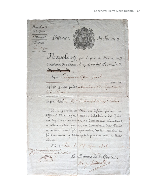 premier ordre du général Pierre-Alexis Duclaux (1775-1828).